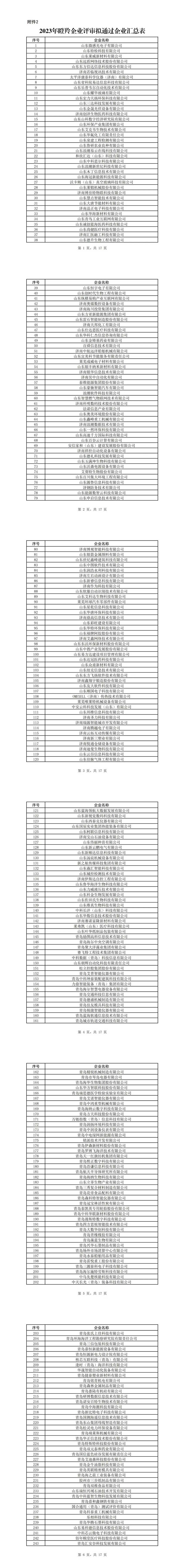 附件2:2023年瞪羚企業評審擬通過企業匯總表